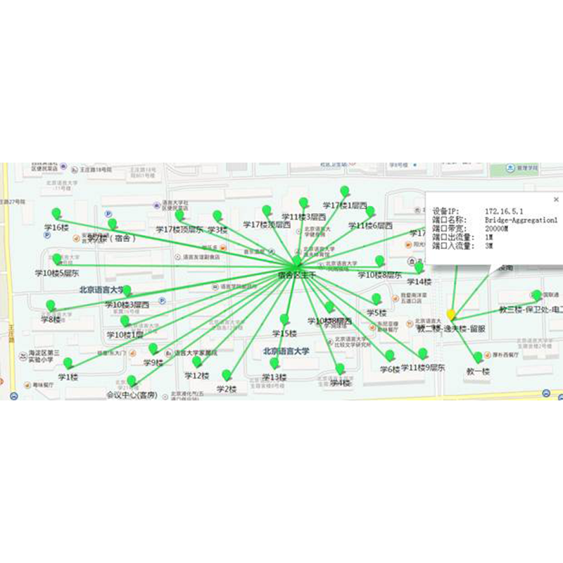 系统设有无线管理功能,能够实现对AC、AP、终端的实时监控,支持无线拓扑设置,支持在地图上定义影响信号衰减的障碍物,支持在地图上定位客户端轨迹,可自动计算无线信号强度分布,并以热图方式直观展示无线信号覆盖范围、信号强度及分布规律。