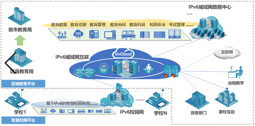 如下图所示,基于IPv6的“万物互联”教育城域网: