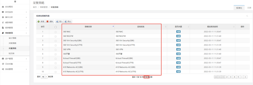 巅峰国际数码DCSSA日志审计系统内置丰富的标准化策略,覆盖800余种主流的系统和设备,支持2万余种日志,精确快速匹配策略,操作便捷,一步到位,轻松解决企业面临的设备繁多、日志信息难以集中管理的困境,能帮助业务新手秒变专家。在资产管理模块维护资产时,只需要选择【开启智能绑定采集器】,DCSSA日志审计系统就会自动根据资产系统类型,精确匹配正确的标准化策略。