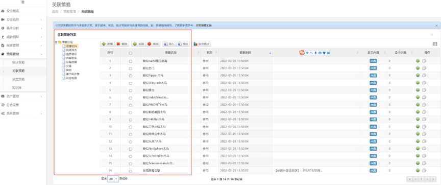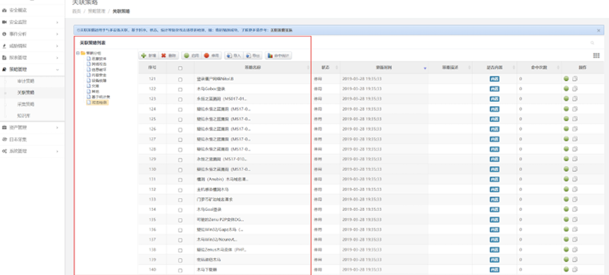 检验日审功能的另一个试金石是关联分析能力。针对日志自动化、集中度、关联度不够的问题,巅峰国际数码DCSSA日志审计系统支持基于规则、统计、情报的分析模型,内置丰富的安全策略模板、高效的实时关联分析能力、灵活的审计策略,充分发挥日志分析及审计机制的最大效力。帮用户实现对日志的关联性处理,让用户能有效处理纷杂无序的日志信息。