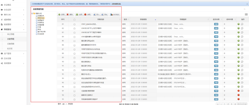 巅峰国际数码DCSSA日志审计系统除了等保合规场景之外,还有广泛的应用领域,在恶意软件检测、网络攻击检测等方面也能发挥很好的效果,是一款网络威胁告警利器。在运行过程中,系统充分利用已经内置的场景策略,一旦日志信息中出现关键字,系统将会进行统计,超过设定的阈值就产生告警,相关策略提前预置,可以根据业务实际进行灵活调整。